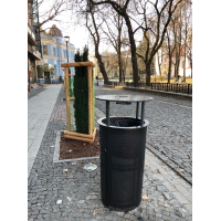 Громадська урна великого розміру. З попільницею. Дверцята на завісах. З вставним металевим відром.