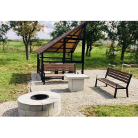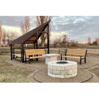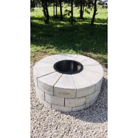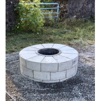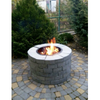 Круглий мангал з бетонних кубиків та вставною металевою чашею. Товщина металу 4 мм. Легко збирається. Можна викладати 2, 3 і більше рядів, в разі потреби.