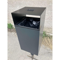 Стильна міська металева урна з відкидною кришкою, внутрішнім відром та попільницею.