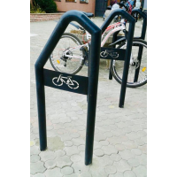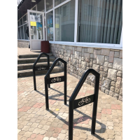 Елегантна невелика велостійка для важого офісу, магазину, прибудинкової території. Може одночасно відігравати функцію антипаркувального елементу.