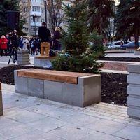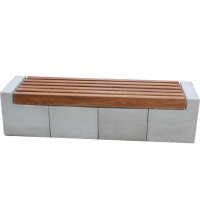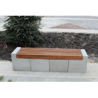 Вулична лавка з бетону і дерева. Бетонна частина складається з 4-х окремих модулів. Масивні дерев'яні бруси покриті захисним маслом в 2 шари.